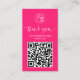 Modern minimalist script and QR code in hot neon pink business order thank you. Add your social media. With an elegant signature script font, all the colours are editable , add your logo. 5 star review for your customers.
