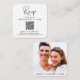 Modern wedding RSVP square enclosure card with "Rsvp" in a contemporary script. Input your wedding website address to create a QR code for guests to scan to RSVP online. The back features your photo overlayed with your first names and wedding date joined together by a heart.