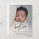 This Modern Script Baby Photo Baptism invitation features a beautiful full bleed vertical photo and hand lettered baptism art and minimal editable text. Click the edit button to customize this design.
