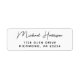 White return address label with your name in a stylish modern signature-like script for your personal, business or special event correspondence.