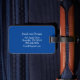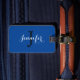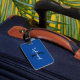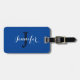 Modern Script Royal Blue White Monogram Bag Tag makes a great gift idea for anyone who travels! Dark blue background can be customized to any available color options. The front is designed with a navy monogram initial on the center and personalized with name in