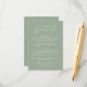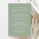 Simple and elegant wedding details card featuring a handwritten white script mixed with modern lettering against a sage green background. Personalize the minimalist wedding details card with your wedding details such as reception information, hotel accommodations, wedding website, etc. The sage green wedding details card is perfect for modern weddings.