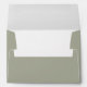 Customize the back flap of this simple, modern wedding invitation envelope with the names of the bride and groom in white handwriting script and the return address in sans serif font on a sage green background.