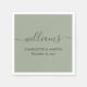 Elegant personalized sage green wedding paper napkins with a modern script font. Easily personalize online. Matching items available to complement these minimalist sage green wedding paper napkins.