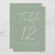 Modern Script Sage Green Wedding Table Number Card