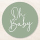 Modern Script Sage Oh Baby Simple Baby Shower Round Paper Coaster