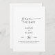 This modern script save the date announcement card is perfect for a minimalist wedding. The simple black and white design features unique industrial lettering typography with modern boho style. Customizable in any colour. Keep the design minimal and elegant, as is, or personalize it by adding your own graphics and artwork.