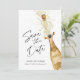 Modern Script Save the Date Card. Designed with a beautiful watercolor Gold Champagne Bottle. Matching items in our store Cava Party Design.
