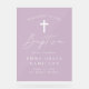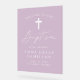 Welcome guests to your child's baptism with this Modern Minimalist Script Baptism Welcome Sign. The simple, elegant sign features a casual white calligraphy script with a light purple acrylic background for a perfect design for modern baby baptisms. Personalize the acrylic baptism welcome sign with your child's name, date, and location.