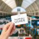 A modern script signature usher name badge for events, or theatre ushers. Customize with your name. Trendy script type. Simple all purpose badge.