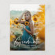A Modern Script Simple Photo Graduation Invitation with handwritten font full bleed portrait photo on the front with name and graduation details. The back has a second photo and additional party details. Click the edit button to customize this design.