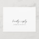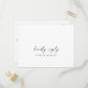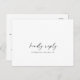 This modern script song request RSVP postcard is perfect for a minimalist wedding. The simple black and white design features unique industrial lettering typography with modern boho style. Customizable in any colour. Keep the design minimal and elegant, as is, or personalize it by adding your own graphics and artwork. Build your wedding guest list and your dance floor song list all at once! This wedding response postcard conveniently asks guests if they will be able to attend your wedding, and also what song will get them to dance.