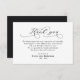 These modern sympathy acknowledgement note cards express your gratitude on 4-5 lines of custom text as well as a personalized sign-off as well as the name and date of the passed family member. The timeless script calligraphy design in black and white make this a beautiful yet simple way to thank family and friends during this sad time.