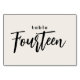 Modern Script Table 14 Fourteen Off-White Wedding or Dinner Party Table Number. Fourteen is written out in a trendy chic hand-lettered font. The background colour of this table number is colour editable, just click the customize further button to select any colour you need. A stylish yet simple design in black and off-white or any background colour you choose. This table number card template makes it fast and easy to create stunning additions to your wedding ceremony and reception décor.