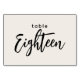 Modern Script Table Eighteen Off-White Wedding or Dinner Party Table Number. 18 is written out in a trendy chic hand-lettered font. The background colour of this table number is colour editable, just click the customize further button to select any colour you need. A stylish yet simple design in black and off-white or any background colour you choose. This table number card template makes it fast and easy to create stunning additions to your wedding ceremony and reception décor.