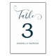 Simple, elegant wedding table number template with modern romantic script element, editable table number and custom wedding name in deep teal blue. The text is printed equally on the front and back of the card. The minimalist design of these table number cards will add a stylish touch to your wedding table decorations without dominating them. © y.BEE WEDDINGS