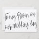 Simple and pretty calligraphy style "To my groom on our wedding day" wedding day card.