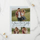 Modern script trendy three photo light blue save the date
