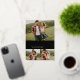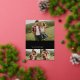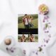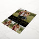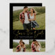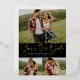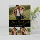 With a three photos and a modern script written "save the date" in foil on a black background, this card is the perfect way to announce your engagement and upcoming wedding to friends and family. The text is bold and modern but still sophisticated. The customizable text on the front has room for names, date, location and other information like a wedding website. The back is a matching black with a white starry speckle. The colour can be changed by clicking "customize further."