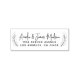 This unique rubber stamp design harmonizes traditional and contemporary aspects, creating a sophisticated and intimate ambiance that can be tailored to your preferences. It showcases delicately sketched foliage encircling an elegant handwritten script fonts. Effortlessly update the template with your desired information, such as names, house number, street, city, state, and zip code. While originally intended for wedding correspondence, thank-you notes, and special occasions involving two individuals, this versatile stamp also complements individuals and families perfectly. To personalize, just click "Personalize this template" and modify the text within the designated fields.