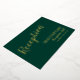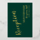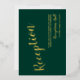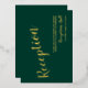 featuring title "Reception" in real gold foil modern script font with details in real gold foil modern sans serif font on emerald green background.