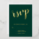 Modern Script Emerald Green and Gold Wedding Invitation Suite : RSVP Postcard