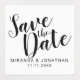 featuring title "Save the Date" in black modern script font with name and date in modern sans serif font on white background.