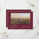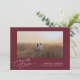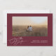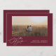 A very modern whimsical calligraphy script against a vibrant burgundy background adorns this Save The Date card. Easily customize with your personal details, photo, and wedding website URL