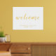 featuring title "Welcome" in real gold foil modern script font with details in real gold gold modern sans serif font on white background.