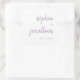 These elegant, minimalist wedding stickers feature colourful, lavender modern script typography and clean, sans serif text on a white background, for a simple and stylish design you will love.