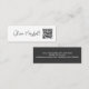 Modern Script White Black Minimalist QR CODE Mini Business Card