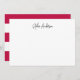 This modern note card features modern script for your name/business name with a white stripes and customizable back background colour (simply click customize to change the background colour).