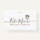 Triple hearts and crown event or wedding planner name badge for wedding fairs, conventions or an open house. Be ready with your logo, customized name and phone number on the back for potential clients to access.