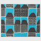 Modern seamless pattern with houses in black and blue on cream background.