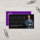 Professional senior pastor business card, thoughtfully designed to reflect both spiritual leadership and modern style. Featuring a black background, confident photo layout, and clean typography, this card is perfect for pastors, church leaders, ministers, or evangelists looking to connect with their community. The front highlights the title “Senior Pastor” with a customizable cut out photo and name, while purple at the back offers space for your church’s name, contact details, logo, and a convenient QR code for easy access to sermons, websites, or church bulletins.
