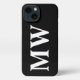 Modern serif monogram initials solid black white iPhone case