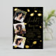 She did it!!! Celebrate the graduate with this simple and cool modern black and real gold foil minimalist 4 photos graduation invitation ( vertical) with trendy script calligraphy, with graduation cap and confetti.