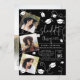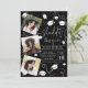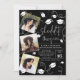 She did it!!! Celebrate the graduate with this simple and cool modern white on black minimalist 4 photos graduation invitation ( vertical) with trendy script calligraphy, with graduation cap and confetti.