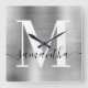 Modern Signature Monogram Silver Foil Square Wall Clock