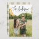 Modern holiday card featuring your family name displayed at the top of the design in a black handwritten signature script. Personalize the card with a custom greeting, the year, and your full-bleed vertical photo. The trendy holiday card reverses to display a rustic cream and olive green buffalo plaid pattern.