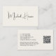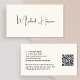 Professional light cream minimal modern business card with your name in a stylish signature script on the front and your contact information (such as email, telephone numbers, firm name and mailing address) in clean, simple typography on the back. Add your website's URL address to create a scannable QR code.