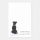Simple and modern dog walking and pet sitting note pad features black dog silhouette with pink dog leash.
