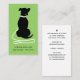 Simple and modern dog walking and pet sitting business card features hot green card with black dog silhouette with dog leash.