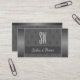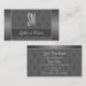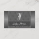 Make a lasting impression with this elegant business card design featuring silver gradient borders and monogram pattern on a grey background.
