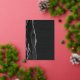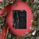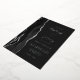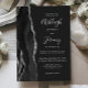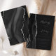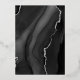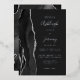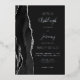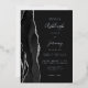 The left-hand edge of this elegant modern wedding invitation features a black watercolor agate border trimmed with faux silver glitter. The customizable text combines handwriting, copperplate and italic fonts in real silver foil on an off-black background. The reverse side features a matching black and silver agate design.
