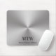 Modern Silver Brushed Metal Look Name and Monogram Mouse Pad