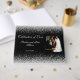 An modern chic guest book sprinkled with silver glitter confetti on a midnight black background. This is part of a matching wedding suite that can be fully personalized.