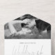 This all in one wedding invitation is perfect for your special day. It includes not only the wedding invitation for your guests, but also a section for your wedding details, RSVP, including a choice of menu selection and a section for a beautiful image of the happy couple. In the customize section you will be able to crop your photo and adjust it to get the perfect fit, change the colors and style of the fonts and customize the background. We have designed this all in one invitation to be used with envelopes, however, if you would prefer to send this invitation without an envelope, please remove the wording and image from the detail section on the back, leaving it blank to add a recipient address. If you would like any help or changes made to the design, please contact us and we will be here to help.
