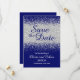 This modern and classy "Save the Date" card has a sliver glitter effect on a rich royal blue background. You can customize the font style and colour any way you like as well as change the background colour of the card. This is part of a beautiful matching wedding suite that can be fully personalized.