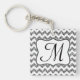 Modern Silver Glitter Chevron Zig Zag Stripe Monogram Initial Personalized Key Chain